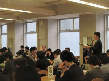 各教科部会の話し合いの後で、先生方全員が集まっての全体会が行われました。そこでは、各教科部会で話し合われたことの報告がありました。1年間、先生たちは子どもたちのことを考えながら、いろいろな授業の取り組みを行ってきたことが分かりました。