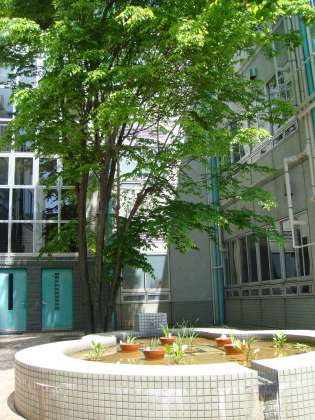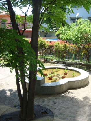 写真の場所がどこなのかご存知ですか。PTA室の窓の外のひょうたん池です。