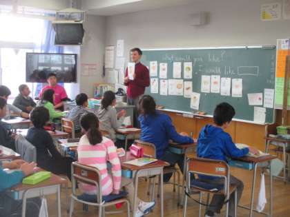 今日は高学年で外国人講師による授業がありました。5年生は、好きな食べ物を質問する言い方を勉強し、絵カードを使ったアクティビティーで楽しくやりとりしていました。高学年の今年度のALTによる外国語活動は最後になります。6年生は中学校で本格的な英語の授業があります。中学校でも楽しく学べるといいですね。