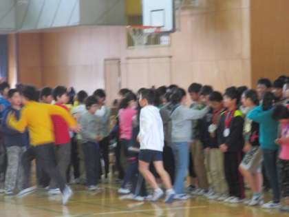 5年生からのメダルのプレゼント。ちょっと照れくさそうな表情の6年生でした。