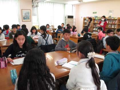 放課後、代表委員の子どもたちが緑丘中学校に出向き、みどりの学び舎の小学校3校による児童会交流会に参加しました。この会は、各小学校の児童会の取組を紹介し合い、親睦を図ることが目的となります。八幡山小学校の代表委員の児童も、今日の送る会で自信をつけた5年生を中心に、学校独自の活動をしっかり紹介することができました。