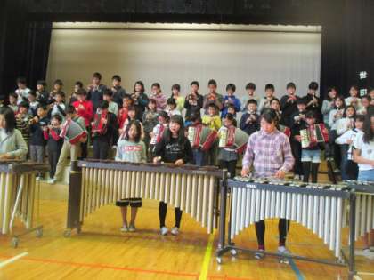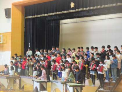 最後に感謝を込めて、6年生全員による合唱と合奏のプレゼントです。合奏「剣の舞」には、会場からアンコールがかかりました。