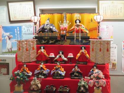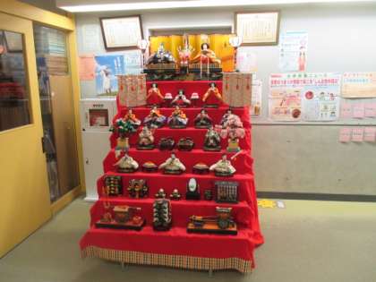 3月3日はひな祭り。先月から1階の玄関に飾ってある雛飾り、今日はしっかり見てほしいですね。