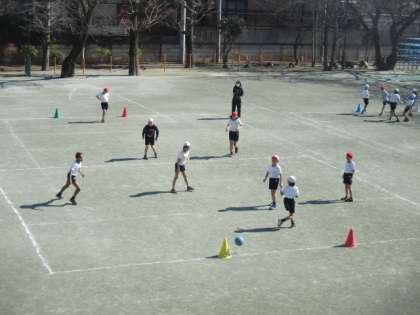 ぐんぐん気温が上がり、ぽかぽか陽気になりました。校庭では3・4年生が体育の授業でサッカーをやっていました。汗ばむようなお天気に、子どもたちの動きもとても軽やかです。