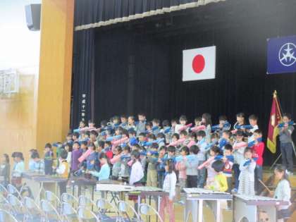 1年生は、来年度4月の入学式で新1年生を迎えるために、出し物の練習をしています。今日も体育館で、呼びかけと合奏の練習をしていました。1年生も4月からは、お兄さん、お姉さんになるのですね。