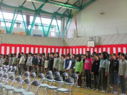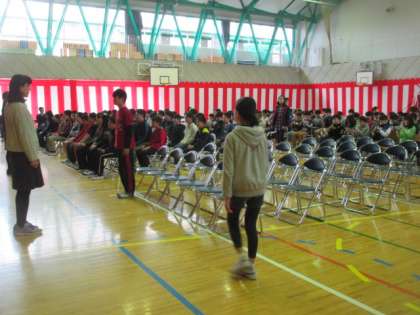 5・6年生は残って明日の卒業式のリハーサルをしました。ほぼ本番と同じような形で進めます。これまで練習を積み重ねた成果はしっかりと出ていて、自信をもってできていました。5年生は、6年生の門出を祝う気持ちが、呼びかけや歌にあらわれていて、たいへん立派でした。6年生は、明日、小学校生活最後で最高の晴れの舞台にしてほしいです。