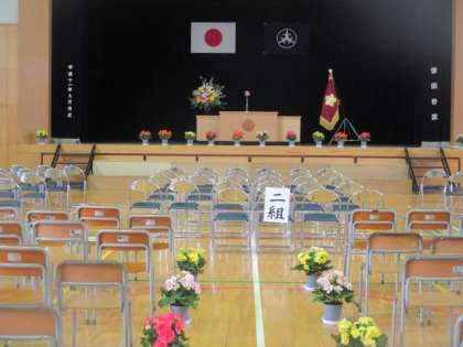 子どもたちがリハーサルを終えて下校しました。午後、教職員は会場の最終確認や受付や飾り付けなど、明日に向けての準備をしました。あとは、明日の本番を待つばかりです。立派な門出になるように祈っています。