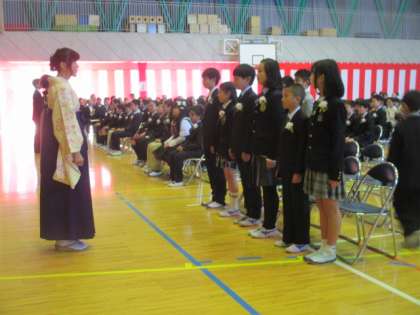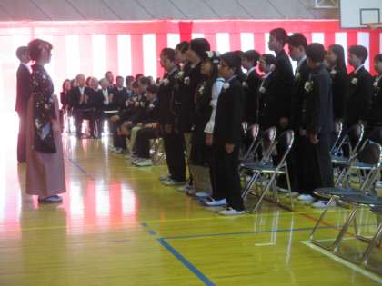 午前10時、予定通り卒業式が始まりました。6年生が1組から順番に入場します。どの子も緊張した表情ではありましたが、立ち振る舞いはとても堂々としていて凛々しく見えます。