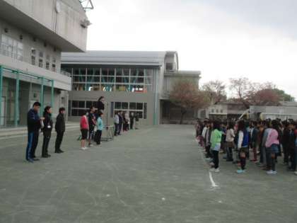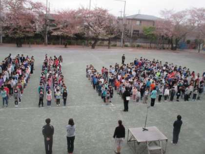 今年度初めての全校朝会です。まだ1年生は参加しませんでしたが、2年生から6年生までの子どもたちは全員5分前には整列ができていました。静かに開始を待つ姿に、丸木校長先生は驚き、大変感心されていました。