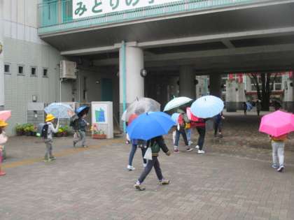 朝から雨が降ったりやんだりのはっきりしない天気でしたが、登校の時間帯は傘が必要になってしまいました。でも、今日も子どもたちは元気にあいさつをして学校にやってきました。6年生も1年生をお出迎えして、しっかりお世話をしてくれていました。