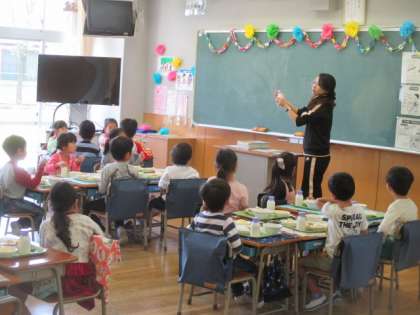 準備ができたので、いよいよみんなで「いただきます!」をします。どちらのクラスも、みんなで手を合わせ、感謝の気持ちを込めて元気に言うことができました。