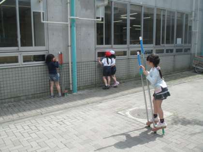 今日は1日、さわやかな青空が広がり、校庭での外遊びを楽しむ子どもたちが多かったです。中休みには、今年初めての金スポも行われ、クラスごとで長なわに取り組みました。昼休みには竹馬で遊ぶ2年生や、ドッジボールを楽しむ4年生の姿も見られました。外で遊ぶにはもってこいのいい季節です。