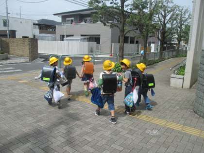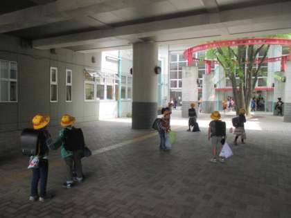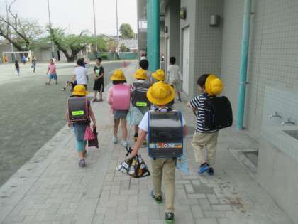 1週間が終わりました。1年生は4時間授業で下校です。同じ方向に帰る友だちといっしょに楽しくおしゃべりしながら帰ります。今日楽しかったことや、好きな遊びのことなど、とてもうれしそうです。「さようなら!」の挨拶もしっかりできました。あまりおしゃべりに夢中になり過ぎないように、車に気をつけて帰りましょうね。また、来週も元気に会いましょう。