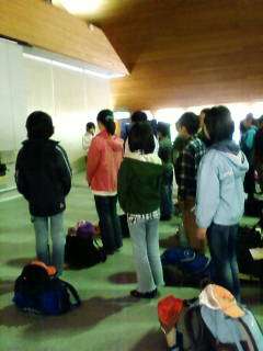 川場移動教室が始まりました。あいにくの雨で、開校式も室内ですが、立派に挨拶をして、スタートです。残念ながら、田植えもできませんが、代わりに壁掛け作りをします。