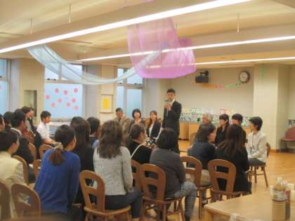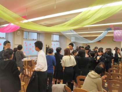 子どもたちの下校後、PTAが主催しての歓送迎会がランチルームで行われました。保護者の方々と離任された先生方とのお別れとあいさつ、そして、4月より本校に着任した先生方の紹介が行われました。会には3月に卒業した中1生も参加し、恩師との再会を喜び、別れを惜しんでいました。