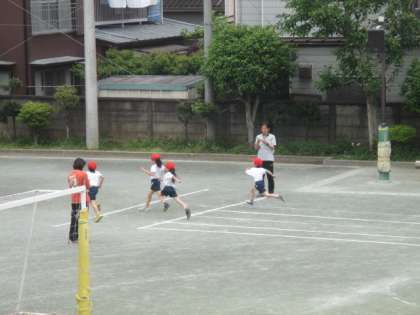 3年生は学年合同で、50メートルのタイムを計測していました。どの子も真剣にスタートの合図を聞き、全力で走っていました。今日は気温がぐんぐん上がり、25度を越える夏日になったようですが、しっかりと身体を動かし、とても元気な3年生の子どもたちでした。