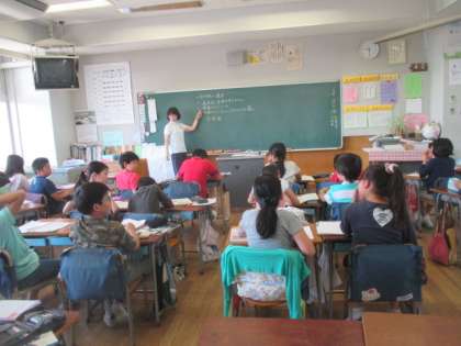 2組は理科の授業で、「1日の気温と天気」の学習に取り組みました。気温のグラフから分かることを考えたり、天気との関係について発表したり、子どもたちは自分の考えをしっかり言うことができていました。