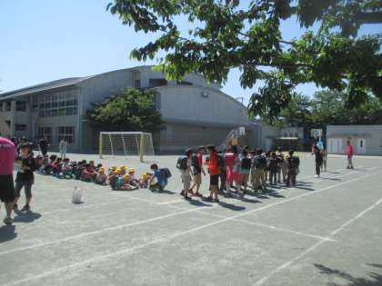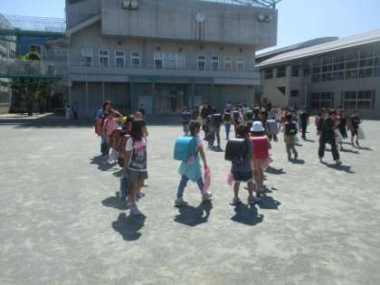 3階の教室の班から順番に下校します。校庭に全員集合して、再度人数の点呼してから、集団で下校です。通学路の確認、危険箇所の確認をしながら帰ります。今年も無事に、全ての班が報告を終えて下校することができました。PTA校外委員の皆さん、そして、班長・副班長・書記などで活躍した6年生の皆さん、ご苦労様でした。