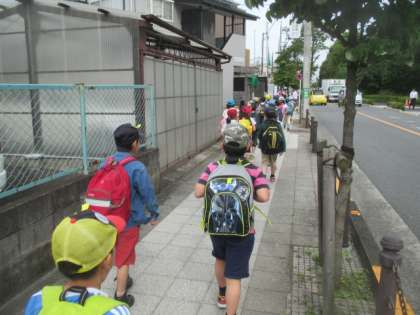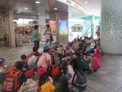 八幡山駅までは徒歩で移動です。歩き方のマナーを守り、駅でも静かに座って待つことができました。