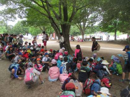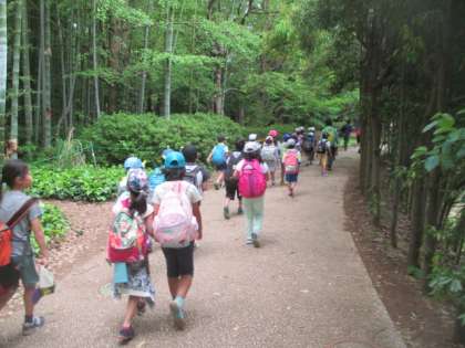 広い公園を歩いて移動し、目的地の「こどもの森」に到着しました。