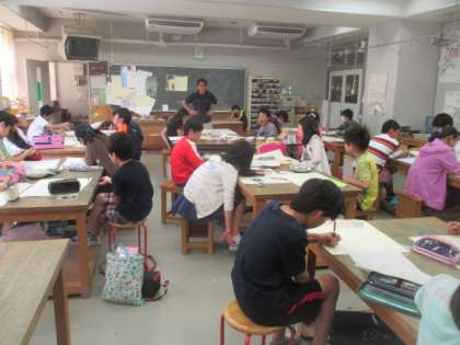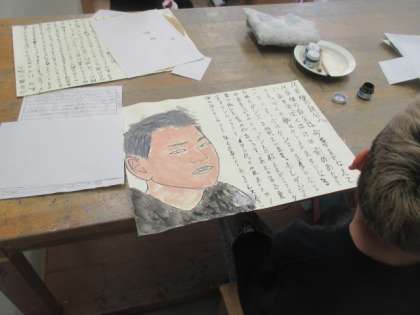 6年2組は、図工の時間に「10年後の私」という自画像と作文による作品づくりに励んでいました。展覧会に向けて、今から気合を入れていきましょう。
