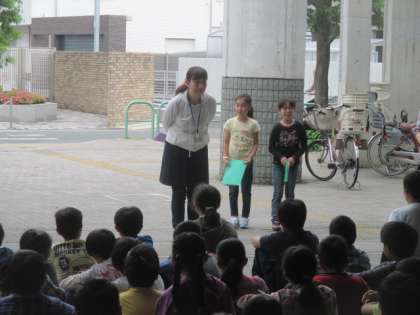 出発式を行います。引率の先生の紹介に、校長先生のお話です。めあてを意識して、3日間過ごしてください。