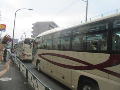 7時25分、いよいよバスが出ます。窓から笑顔で子どもたちが手を振っています。3日間、たくさん楽しい思い出をつくってきてくださいね。いってらっしゃい。