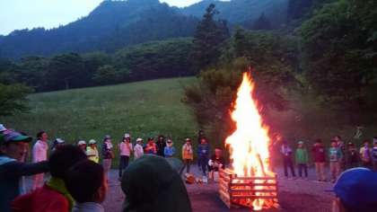 初日の夜のお楽しみ。キャンプファイヤーの様子です。