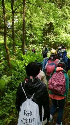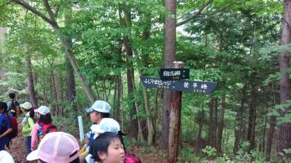 山の中を歩きます。自然の中で食べるお弁当は格別です。