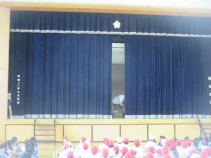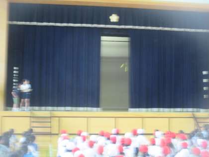 6月に入りました。今月最初の児童集会は、恒例になっている「これなんだろう?」集会です。体育館の舞台の上を横切る物や人を、当てるゲームです。答えは三択で答えますが、少しずつレベルが上がって暗幕が狭まると、子どもたちからも「えー」という歓声があがります。学校生活に関係ある物や人(馬)なども登場して、大いに盛り上がりました。集会委員の皆さん、準備などご苦労さまでした。
