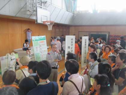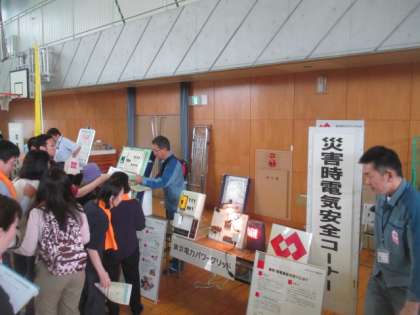 災害用伝言ダイヤル体験・災害時電気安全コーナー・ガスマイコンメーター復帰体験の様子です。