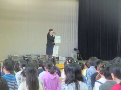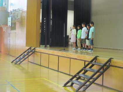 未明から激しく雨が降り出して、今朝は体育館での全校朝会になりました。校長先生からは、6月の「人格の完成をめざして」のテーマ『責任』について、お話がありました。「責任転嫁」をするのでなく、自分の役割はしっかりやり遂げようという内容でした。代表委員の児童からは、雨の日の過ごし方について、今年も提案がありました。梅雨に入って、これからじめじめした日々が続くと思います。体調管理にも十分気をつけながら、毎日元気に過ごしていきましょう。