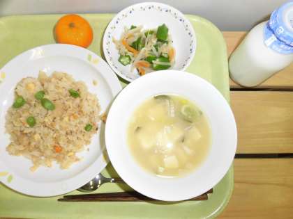 お箸week3日目です。和食の献立ですが、特に低学年ではお皿に盛りつけたごはんがたべづらいかと思い、スプーンをつけました。ネバネバのオクラや、味噌汁の豆腐はうまくつかめるようになったでしょうか。