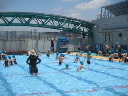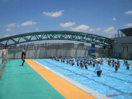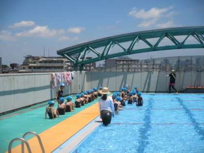 5年生の後、3・4時間目に1年生が八幡山小学校のプールに初めて入りました。校長先生のプール開きのお話を聞いて、いよいよ入水です。八幡山小恒例の『エビカニクス』を水の中で踊りました。1年生の皆さん、初めてのプールの授業は楽しかったですか?