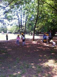 遊具で歓声をあげて遊ぶ子もいれば、木陰で大島桜の実を夢中になって拾う子、小山に登って草原を駆け回る子、思い思いに楽しんでいます。