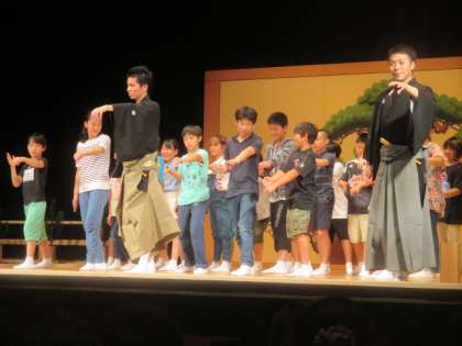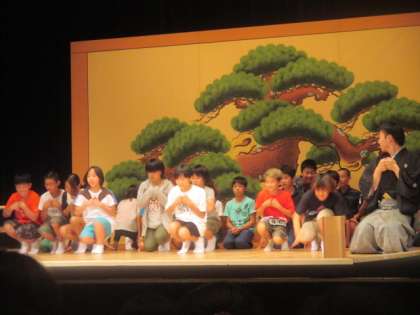 午後から6年生は、世田谷区民会館で行われた古典芸能鑑賞教室に参加しました。室町時代から続く、古典芸能である「狂言」について説明を受けて、実際に能舞台の雰囲気を味わいました。最初のワークショップでは、各校の代表児童が舞台に上がり、「狂言」の独特な所作を体験しました。鑑賞した演目は、教科書にも出てくる『附子(ぶす)』でしたが、能役者さんの生の演技を観て、日本の古典芸術の素晴らしさを実感することができました。