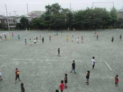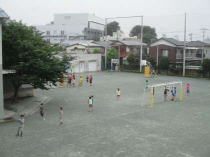 朝から雨が降ったりやんだりの天気でしたが、中休みは何とか外遊びができました。子どもたちは喜んで校庭に出て、思い思いの遊びに興じていました。