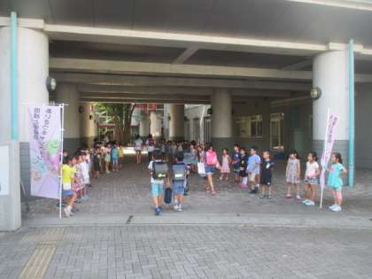 あいさつキャンペーンの最終日は1年生が当番でした。正門・南門前でお兄さんやお姉さんたちを出迎えました。「おはようございます!」の元気な声が響き渡っていました。いよいよ1学期も残り2日です。
