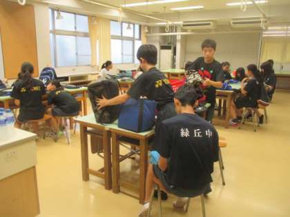 チャレンジ☆スクールの2日目です。早朝から、各講座の講師の方や運営委員のメンバーが準備に大忙しです。今日も、ボランティアでお手伝いしていただける保護者の方や緑丘中学校の生徒さんたちに、多大なるご協力をいただきました。