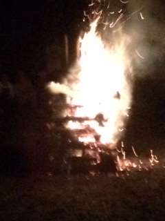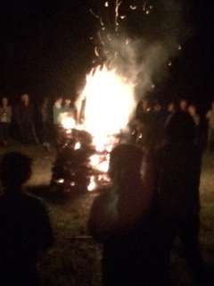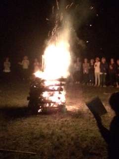 夕食後、すぐにキャンプファイヤーです。大きな炎が上がり、係を中心に盛り上がっています。