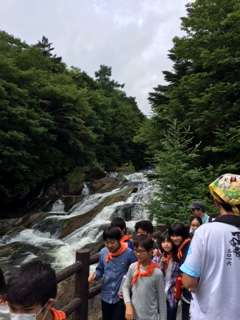 竜頭の滝を見学して、菖蒲が浜に向かいます。天気は大丈夫です。