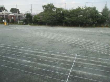 放課後、先生たちは10月1日の運動会に向けて、校庭のトラック作りを行いました。サッカーゴールを撤去して、距離を測定をしながら、みんなで協力してラインを引きます。正確な距離のコースを作るのに何度もやり直しをしながら、何とか完成しました。体育の授業では、まだ水泳指導も残っていますが、並行して明日から運動会に向けての練習も始まります。各ご家庭におかれましては、体育着の準備などもお忘れにならないよう、ご協力お願いします。