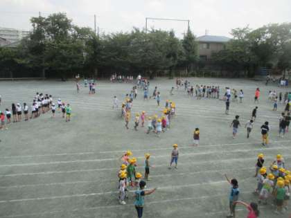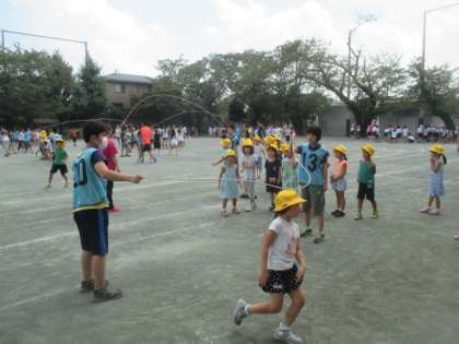 2学期も金曜日の中休みは、スポーツデー。略して「金スポ」です。全校児童が校庭に出て、クラスごとに長縄の練習をします。久しぶりにみんなで校庭で身体を動かして、気持ちのよい汗をかくことができました。