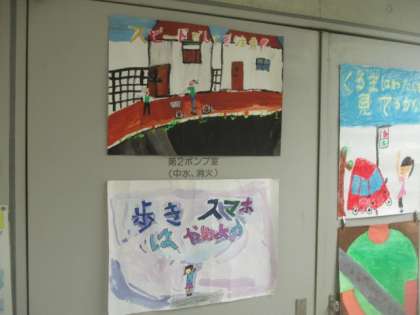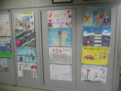 1階の児童昇降口のところには、PTA主催の交通安全児童画のポスターが掲示されました。夏休みの課題として取り組んだ児童の作品が並んでいます。しばらく掲示されていますので、学校にお立ち寄りの際には、ぜひ御覧なっていただきたいと思います。また、来週14日(水)の放課後には、PTA主催で交通安全教室も開催されます。お子様の交通安全への関心を高めていただくために、こちらもどうぞご参加いただきたいと思います。