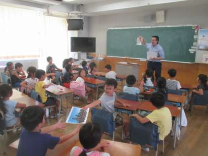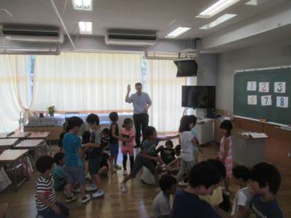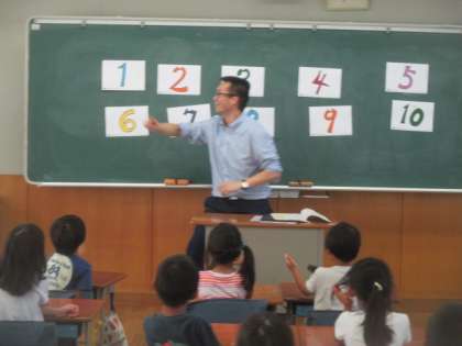 新しい外国人講師のエリック先生による外国語活動が、低学年で行われました。とてもアクティブな動きに、1年生は大興奮。1から10までの数字を英語で元気に発音して、楽しい授業になりました。とってもやさしい先生で、子どもたちともすぐに打ち解けたようです。