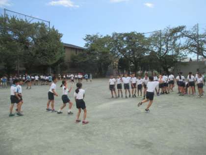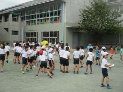 台風一過の気持ちよく晴れ渡った空の下、金曜日の中休みは恒例の「金スポ」です。今日もみんな元気に長縄に挑戦していました。運動会に向けて、それぞれしっかり体力をつけていきましょうね。