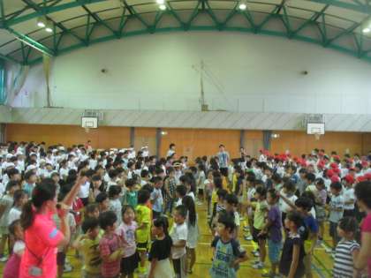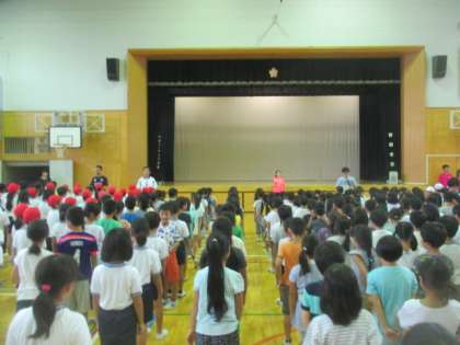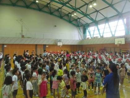 今朝の音楽朝会は、赤白に分かれての運動会の歌『ゴーゴーゴー』の練習です。赤白で向かい合って、体育館が震えるくらいの元気な声で歌いました。両組とも、もっともっと練習して、運動会を盛り上げていきましょう。