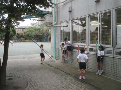 毎日はっきりしない天気が続く中で、校庭での運動会の練習も外遊びも十分できない日が続いていましたが、今日は雨もやみ、金スポもお休みだったので、中休みは思い思いの遊びに興じる子どもたちで賑わっていました。ドッヂボールをやったり、竹馬に乗って遊んだりと、友だちと楽しいひとときを過ごしました。