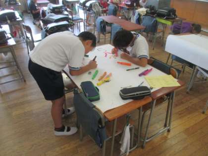 月曜日に行われた運動会の係児童の顔合わせに続き、今日は運動会に向けた作業を行いました。プログラムやマスコット旗の下書きをしたり、運動会の道具を移動させたりと、どの係も大忙しです。運動会を盛り上げ、成功させるために、高学年はひとりひとりが自覚と責任をもって作業に取り組んでいました。