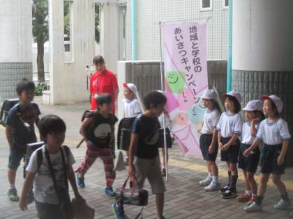 先週から始まったあいさつキャンペーン。今日が最終日で、1年生が正門と南門に立ち、登校してくる上級生を迎えました。昨日からの雨もやみ、久しぶりに傘なしでの登校となりました。笑顔の素敵な1年生の、元気な「おはようございます!」の声が響き渡っていました。
